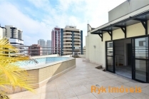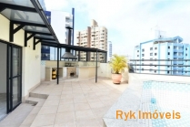 Cobertura duplex, 4 suítes com varanda, closet, banheira de hidromassagem na suíte master, ar condicionado, despensa, piscina, sala de ginástica, churrasqueira e forno de pizza, ambientes amplos e arejados. Área comum com: churrasqueira, salão de festas e de jogos, sauna, piscina, playground, sala de ginástica. Não possui armários de cozinha, dormitórios no contrapiso. - Valor do condomínio R$ 2.200,00.