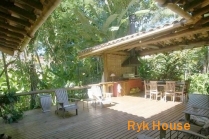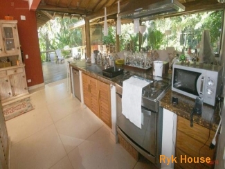Residência charmosa em condomínio fechado, à 50 metros da praia com 295m² de área construída em terreno privativo de 754m². Possui 05 dormitórios sendo 3 suítes, sala 3 ambientes, lavabo, cozinha americana, despensa, banheiro social, jardim, espaço gourmet, piscina natural, lavanderia, área de serviço, banheiro de empregada, garagem coberta para jet-ski e vaga para 4 autos. Condomínio possui área de preservação permanente, portaria com segurança 24hs. zeladoria, câmeras de monitoramento.
